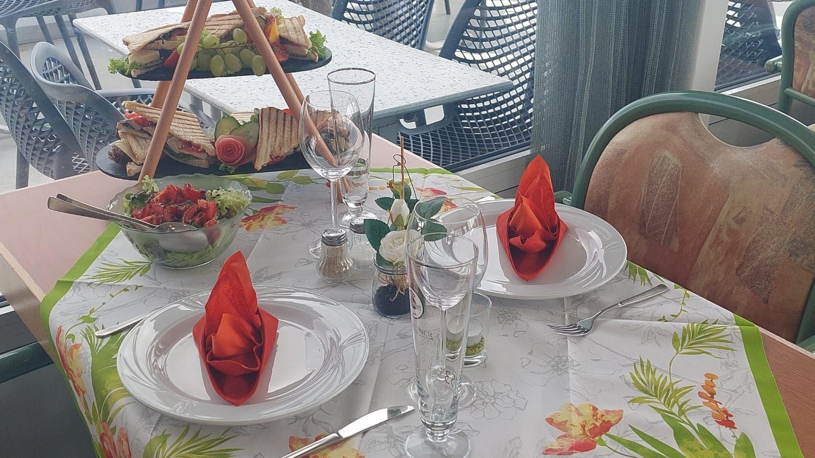 Als "Grünes Gedeck" inkl. Blumenstrauß eingedeckt